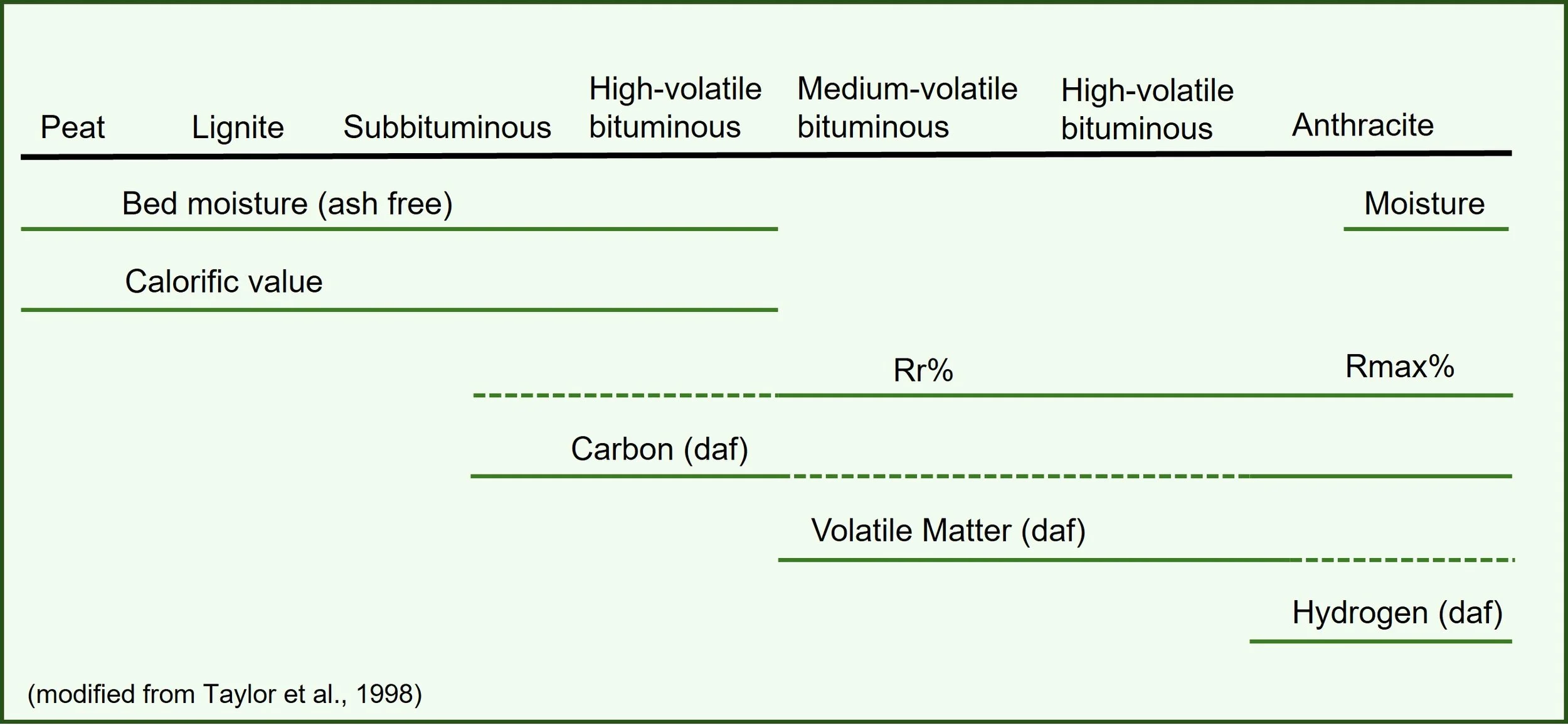 Carbon & Hydrogen Content: Measured in ultimate analysis, useful across various ranks.