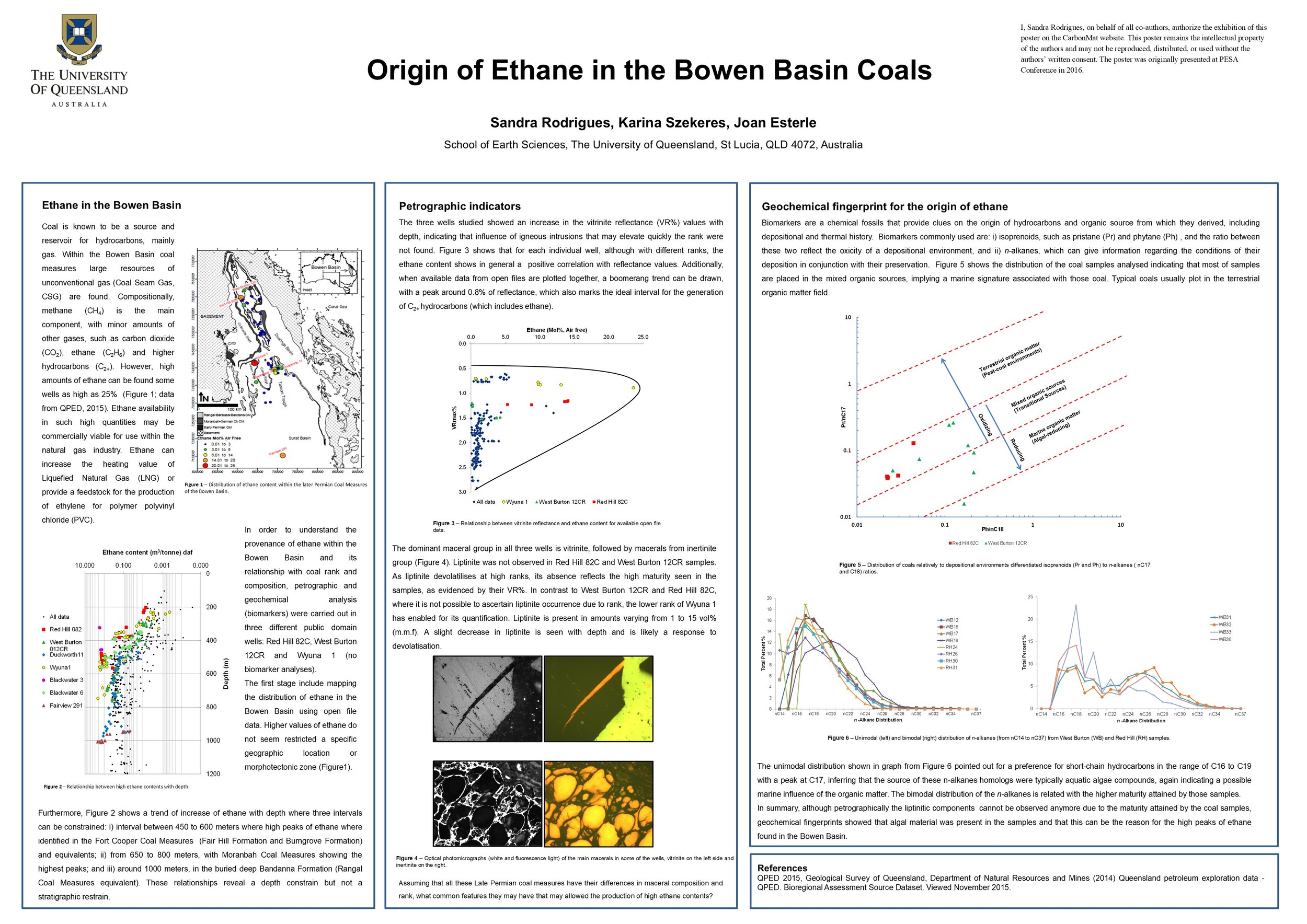 Karina Szekeres, 2016. The use of source rock geochemistry to unravel the origins of high levels of ethane within the Bowen Basin. Honours Thesis. The University of Queensland.